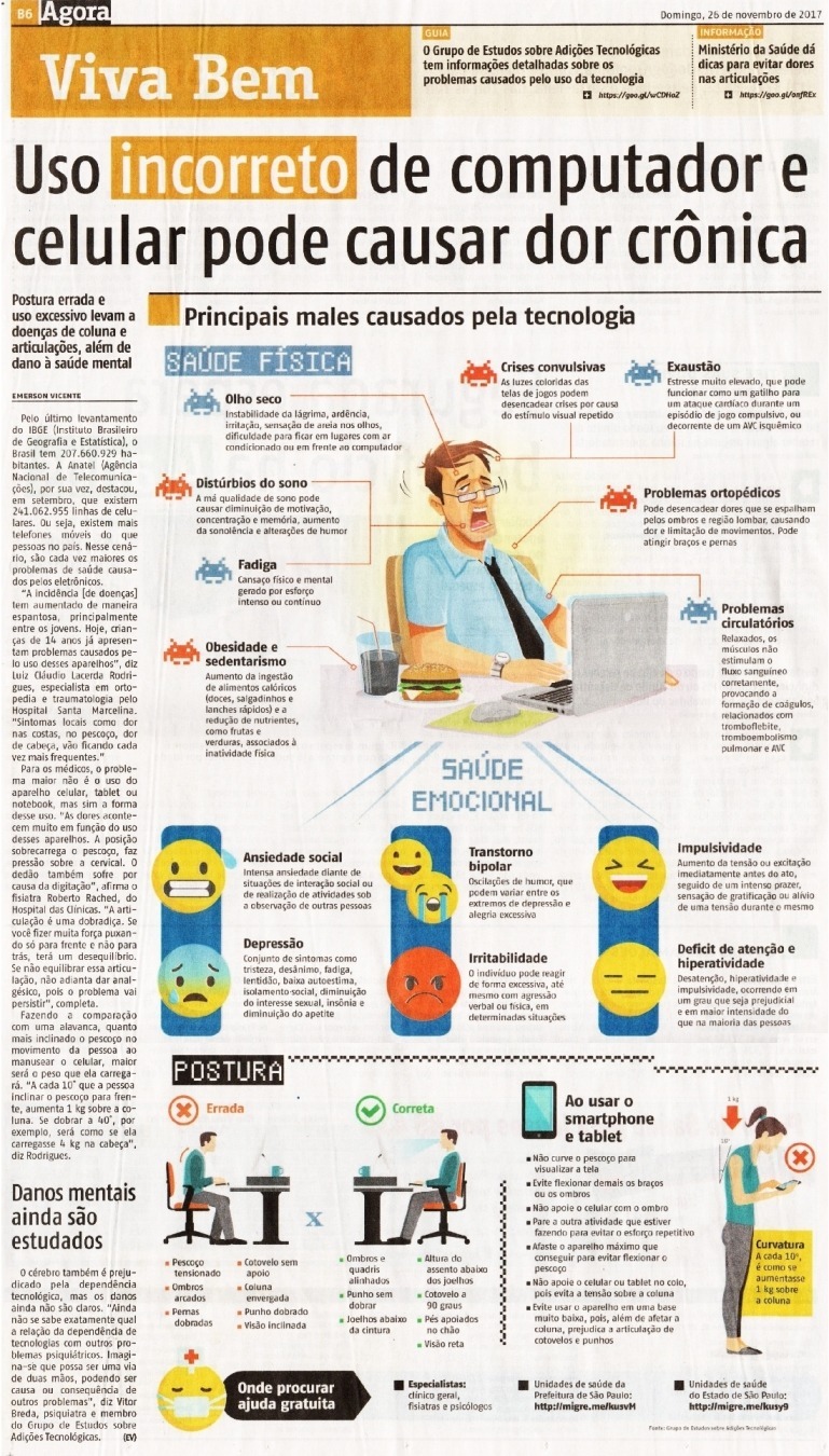 Uso incorreto de computador e celular pode causar dor crônica